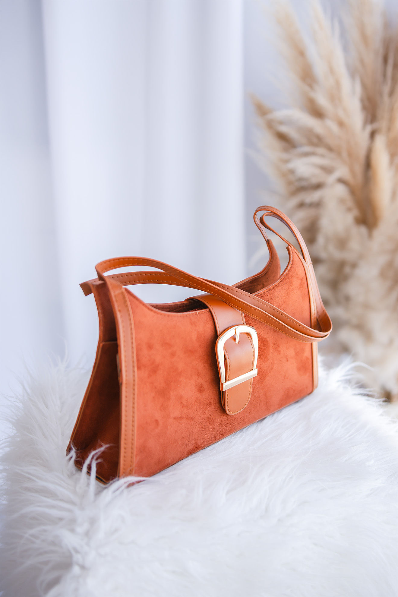 Interior forrado, cierre magnético, correa desmontable y ajustable para usarla al hombro o cruzada.