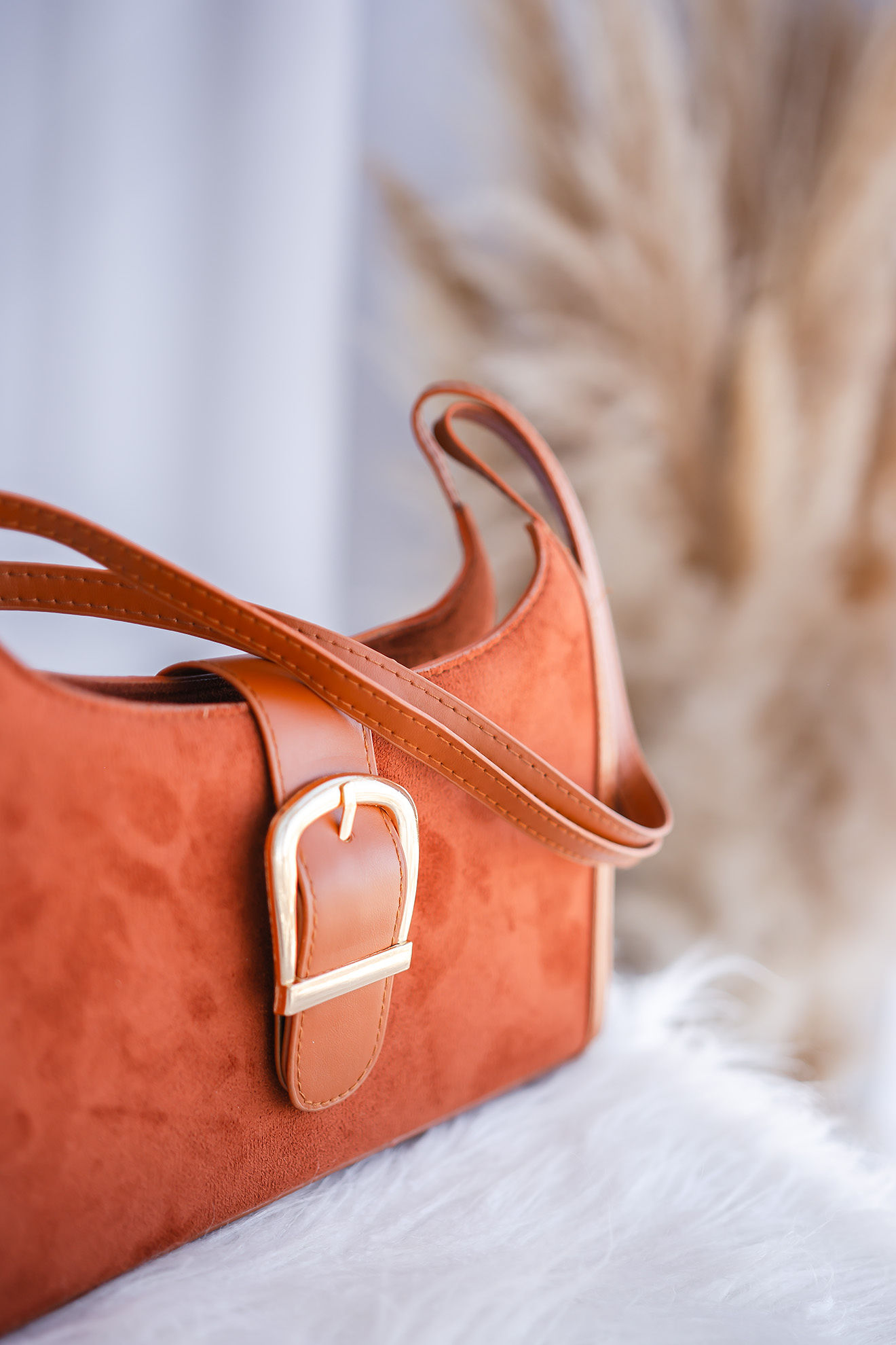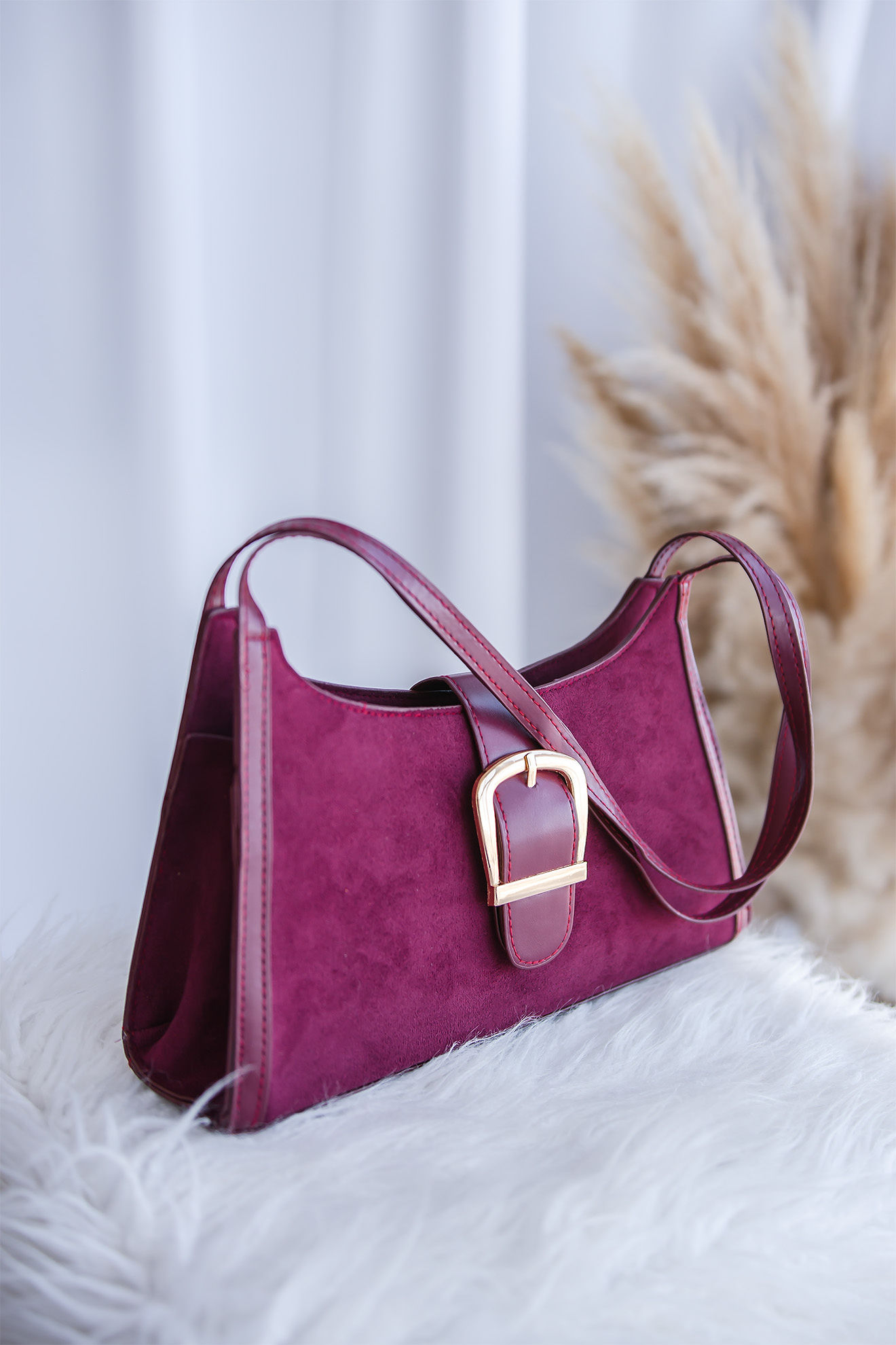 Gamuzada con detalles en eco cuero, contiene cierre y boton magnetico.